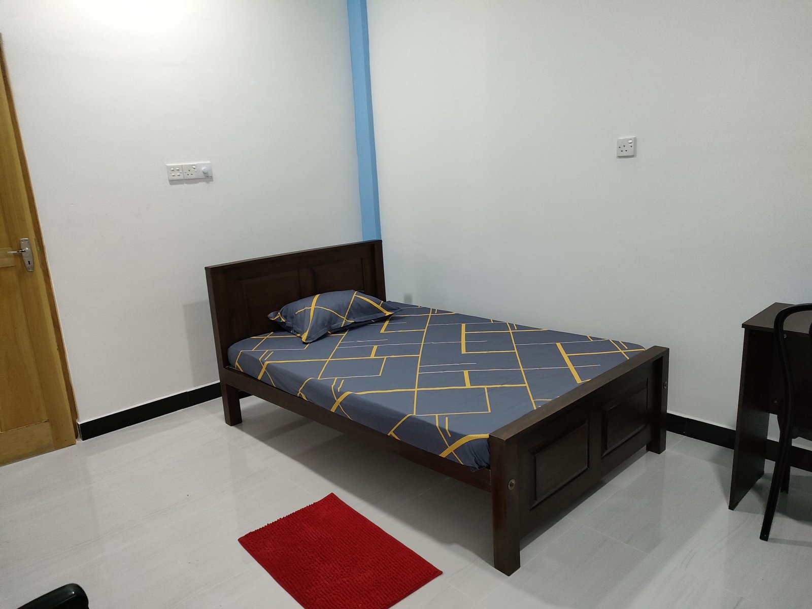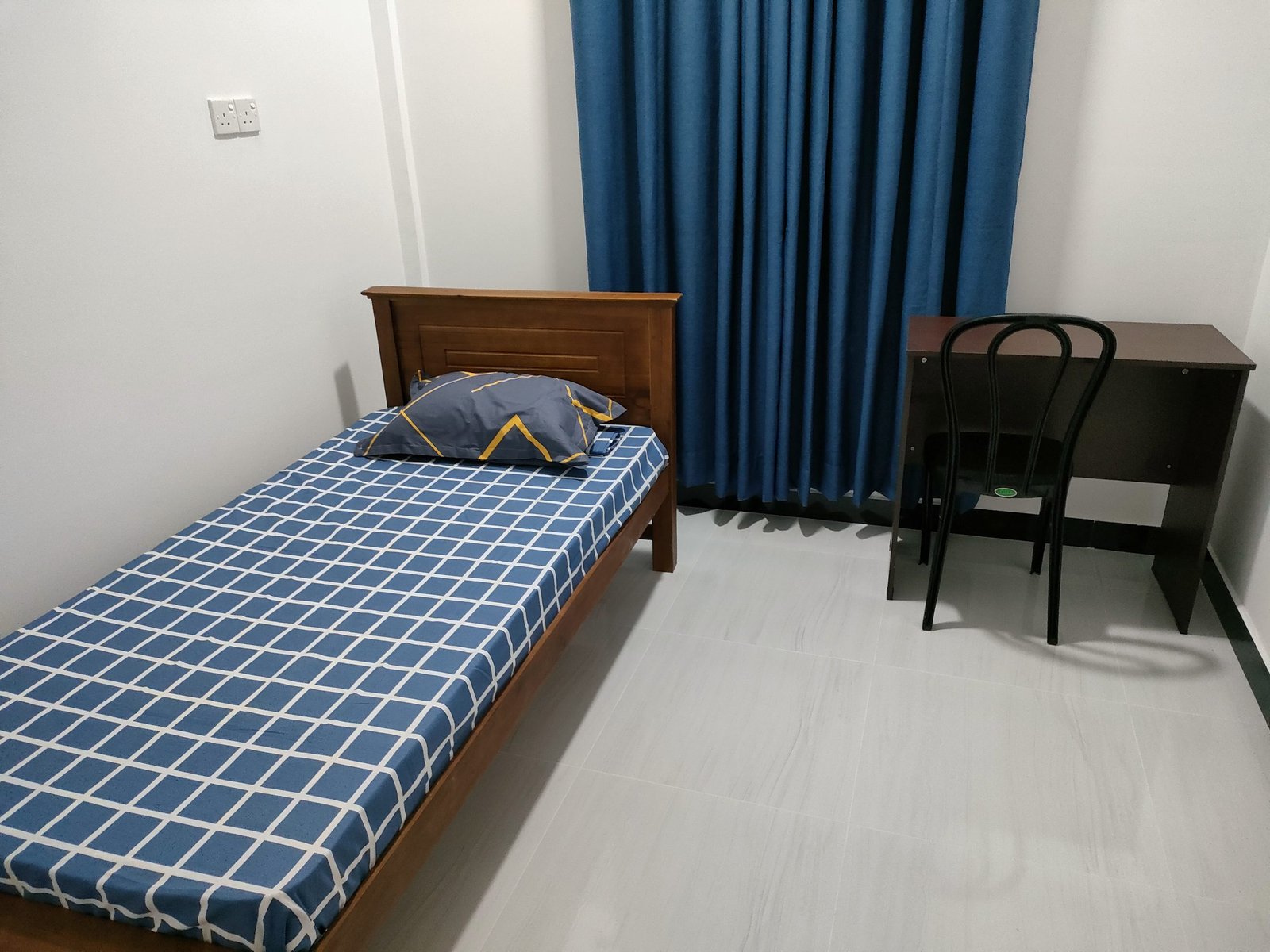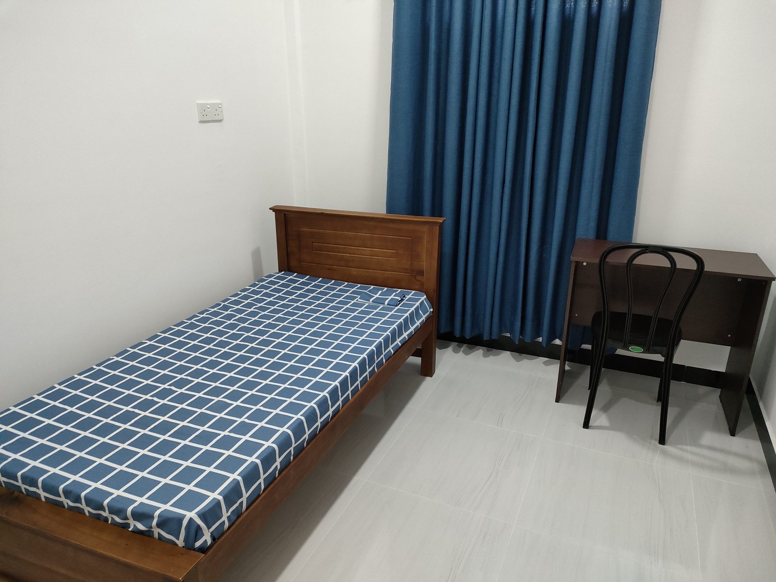- Single bed, Fan, LED light, Power point and Lamp