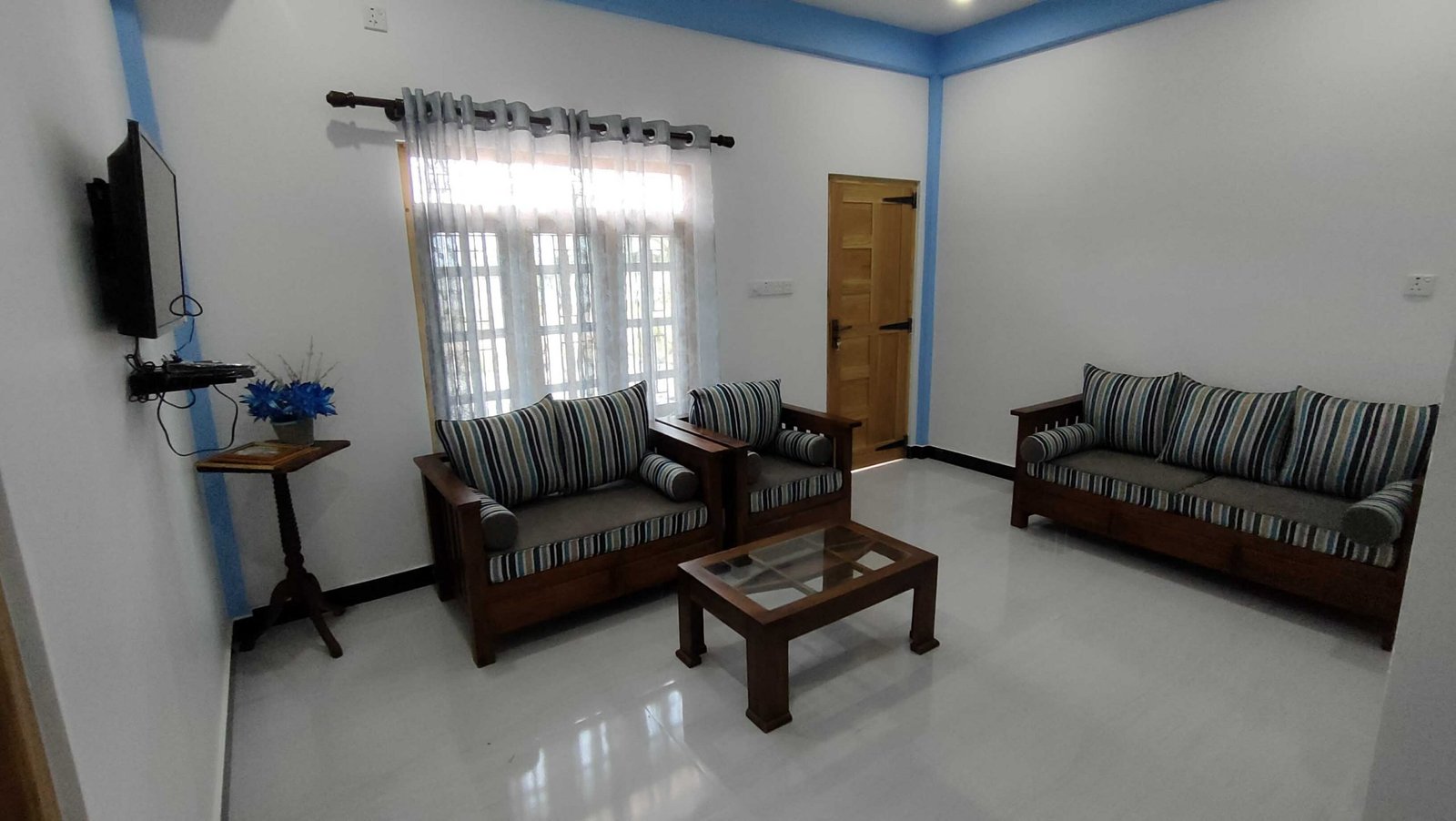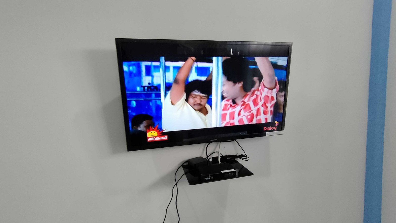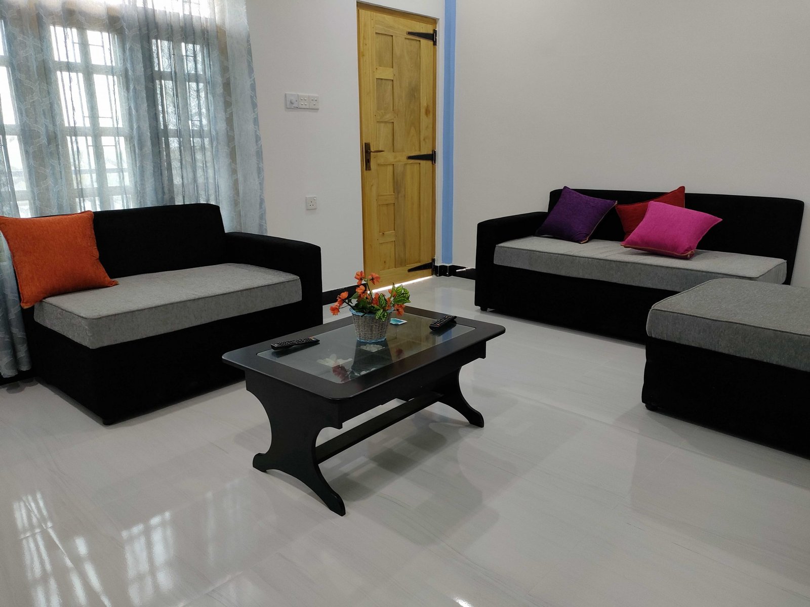 - Fully furnished living room with dining table, TV, sofa & Fan